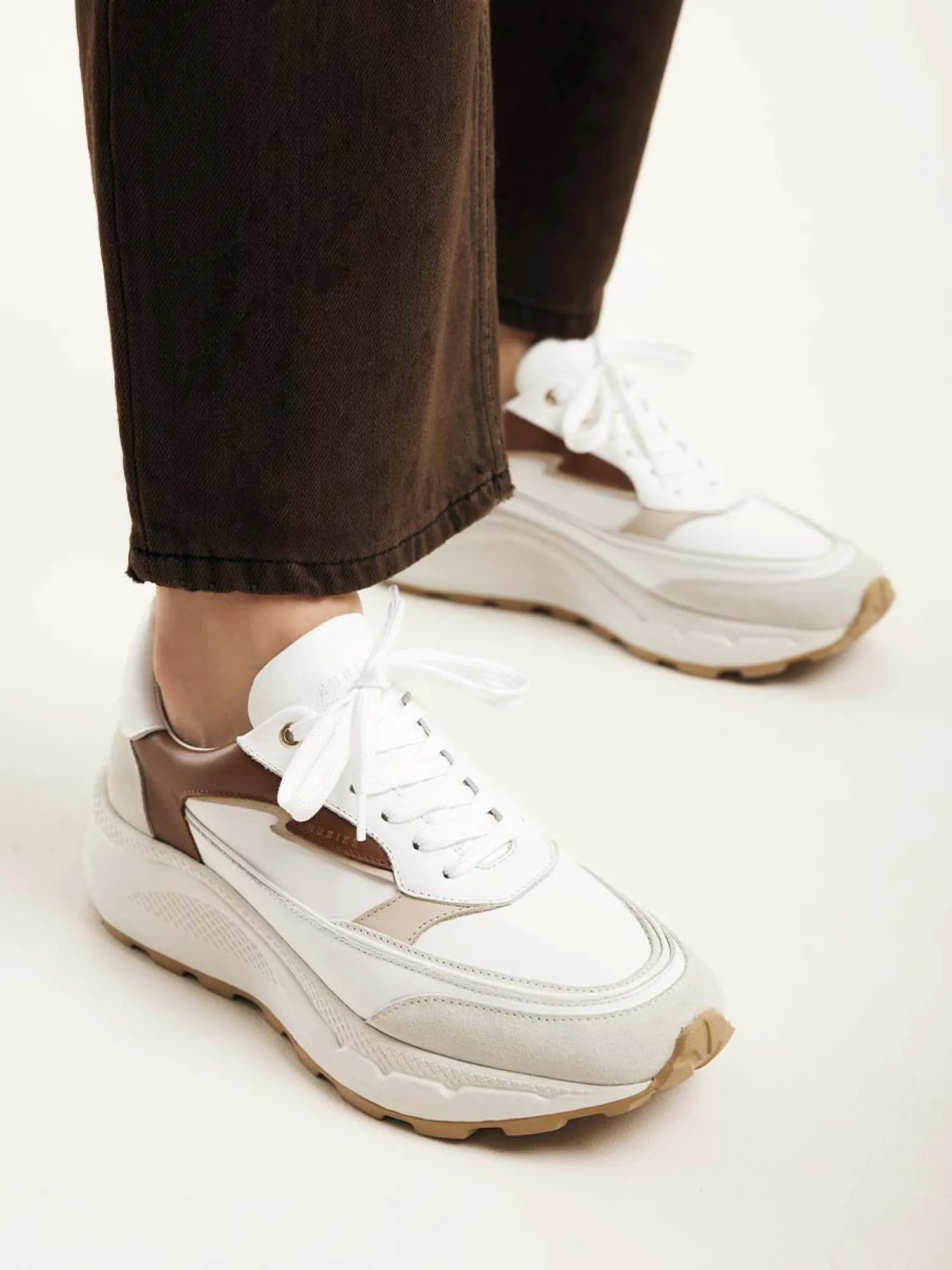 DAMES Nubikk Oberon Nora Wit Bruine Sneakers Voor Dames