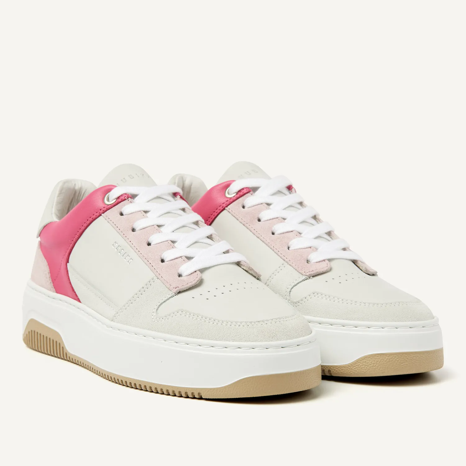 DAMES Nubikk Basket Court Wit Roze Sneakers Voor Dames